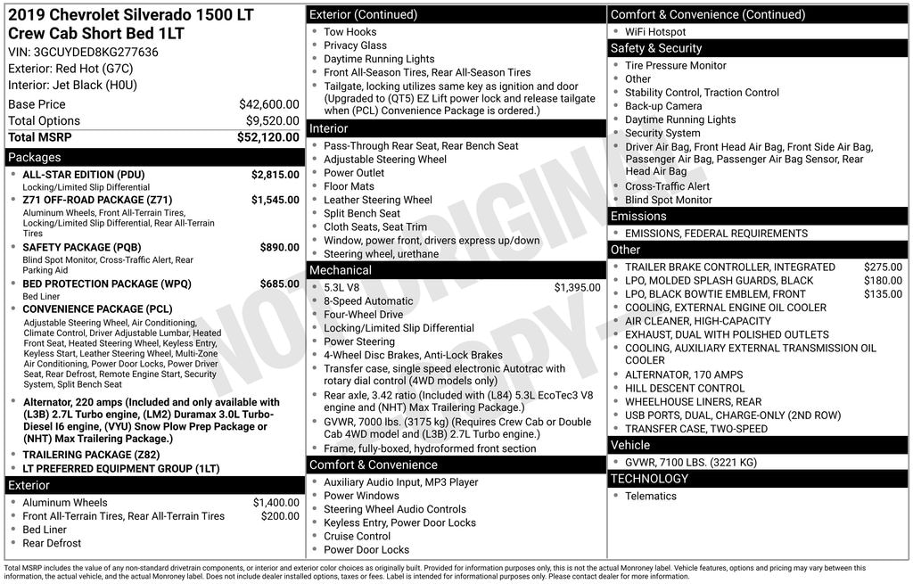 *MSRP is the Manufacturer's Suggested Retail Price (MSRP) of the vehicle. It does not include any taxes, fees or other gov't fees. Pricing and availability may vary based on a variety of factors, including options, dealer, specials, fees, and financing qualifications. Consult your dealer for actual price and complete details. Vehicles shown may have optional equipment at additional cost.