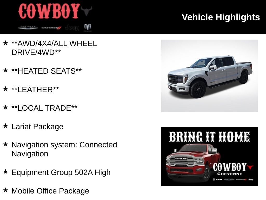 Discover the ultimate blend of power, capability, and sophistication in the 2025 Ford F-150 Lariat. This exceptional truck is more than just a workhorse â" it's a true expression of your active lifestyle, seamlessly combining cutting-edge technology, premium comfort, and uncompromising off-road performance.