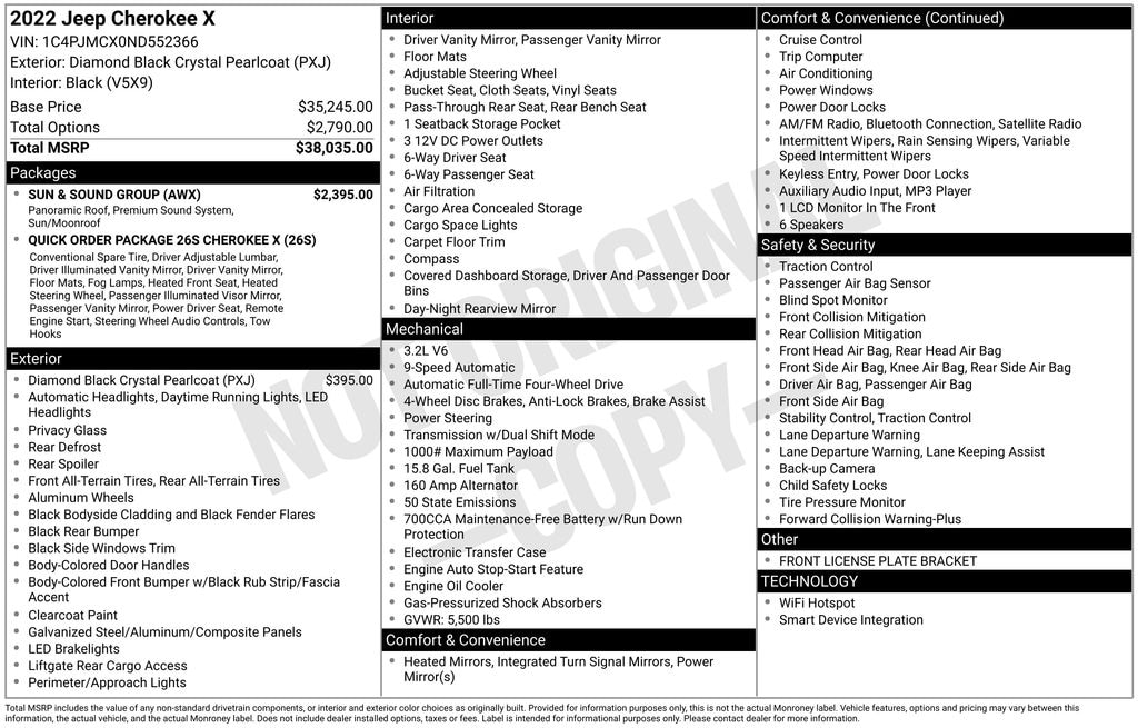 Recent Arrival! Clean CARFAX. **ONE-OWNER**, **Parking Sensors, **REAR BACKUP CAMERA**, Alloy Wheels, Appearance Package, Off Road Package, Popular Equipment Package, Cherokee X, 4D Sport Utility, 3.2L V6, 9-Speed 948TE Automatic, 4WD, Diamond Black Crystal Pearlcoat, Black Cloth, All-Season Floor Mats, Cherokee X, Cherokee X Door Decal, Cherokee X Fascia, Cherokee X Hood & Liftgate Decal, Cloth/Premium Vinyl Seats w/Pixel Play, Front LED Fog Lamps, Gloss Black Badges, Gloss Black Exterior Accents, Gloss Black Grille Surrounds, Heated Front Seats, Heated Steering Wheel, Leather Wrapped Shift Knob, Light Tungsten Interior Accents, Matte Black Rear Tow Hook, Off Road Suspension, Off Road Wheel Flares, Offroad Sill Cladding, Power Adjust 8-Way Driver Seat, Power Driver Lumbar Adjust, Power Front/Fixed Rear Full Sunroof, Premium Alpine Speaker System, Premium-Wrapped Steering Wheel, Quick Order Package 26S Cherokee X, Remote Start System, Silver Anodized Interior Accents, Sliding Sun Visors w/Illuminated Mirrors, Steering Wheel Mounted Audio Controls, Sun & Sound Group, Wheels: 17" x 7.5" Black Painted Aluminum, Windshield Wiper De-Icer.
