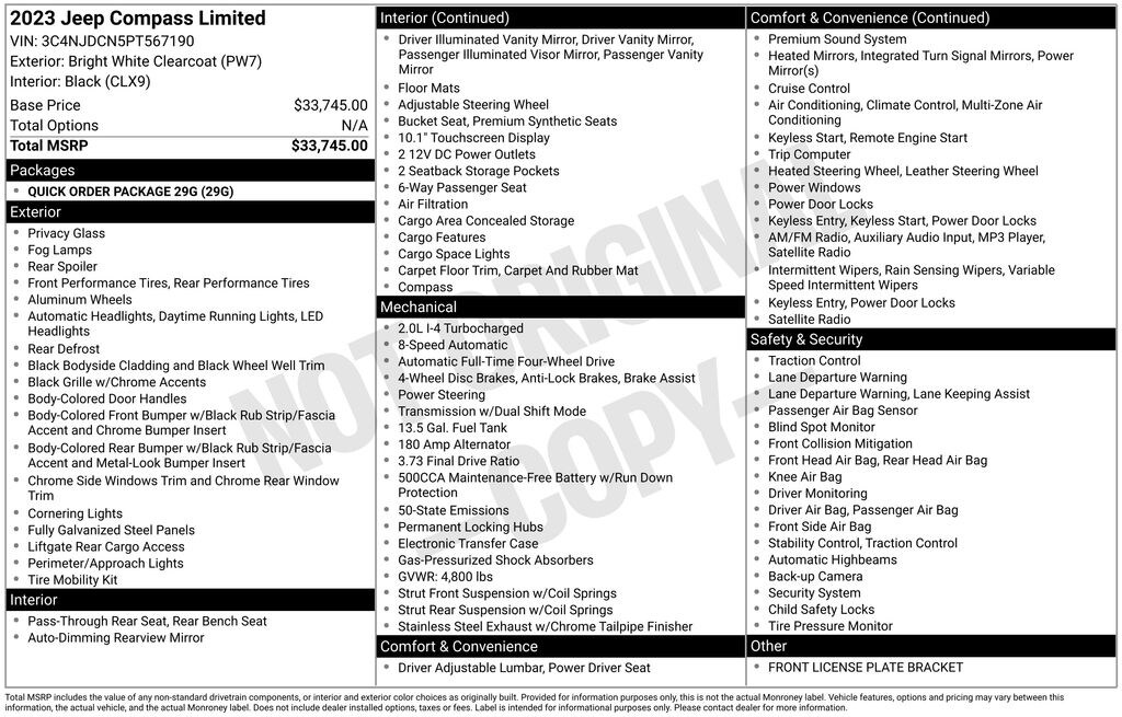 *MSRP is the Manufacturer's Suggested Retail Price (MSRP) of the vehicle. It does not include any taxes, fees or other gov't fees. Pricing and availability may vary based on a variety of factors, including options, dealer, specials, fees, and financing qualifications. Consult your dealer for actual price and complete details. Vehicles shown may have optional equipment at additional cost.