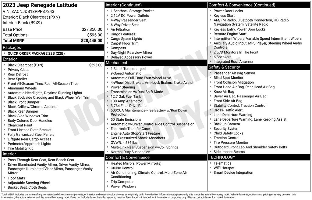 *MSRP is the Manufacturer's Suggested Retail Price (MSRP) of the vehicle. It does not include any taxes, fees or other gov't fees. Pricing and availability may vary based on a variety of factors, including options, dealer, specials, fees, and financing qualifications. Consult your dealer for actual price and complete details. Vehicles shown may have optional equipment at additional cost.