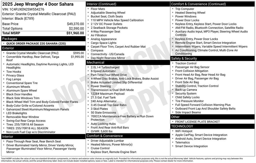 *MSRP is the Manufacturer's Suggested Retail Price (MSRP) of the vehicle. It does not include any taxes, fees or other gov't fees. Pricing and availability may vary based on a variety of factors, including options, dealer, specials, fees, and financing qualifications. Consult your dealer for actual price and complete details. Vehicles shown may have optional equipment at additional cost.