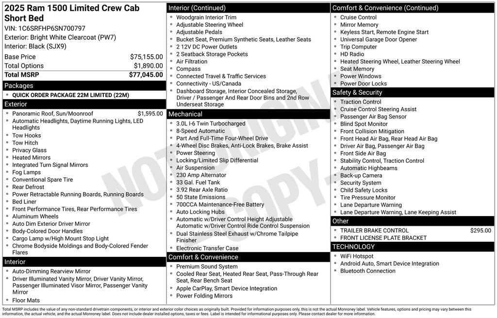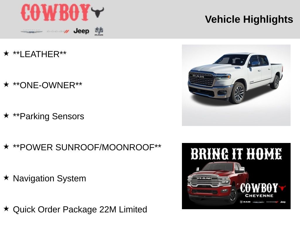 CARFAX One-Owner. Clean CARFAX. **LEATHER**, **ONE-OWNER**, **Parking Sensors, **POWER SUNROOF/MOONROOF**, 1500 Limited, 4D Crew Cab, 3.0L I6, 8-Speed Automatic, 4WD, Bright White Clearcoat, Black Leather, Navigation System, Quick Order Package 22M Limited.