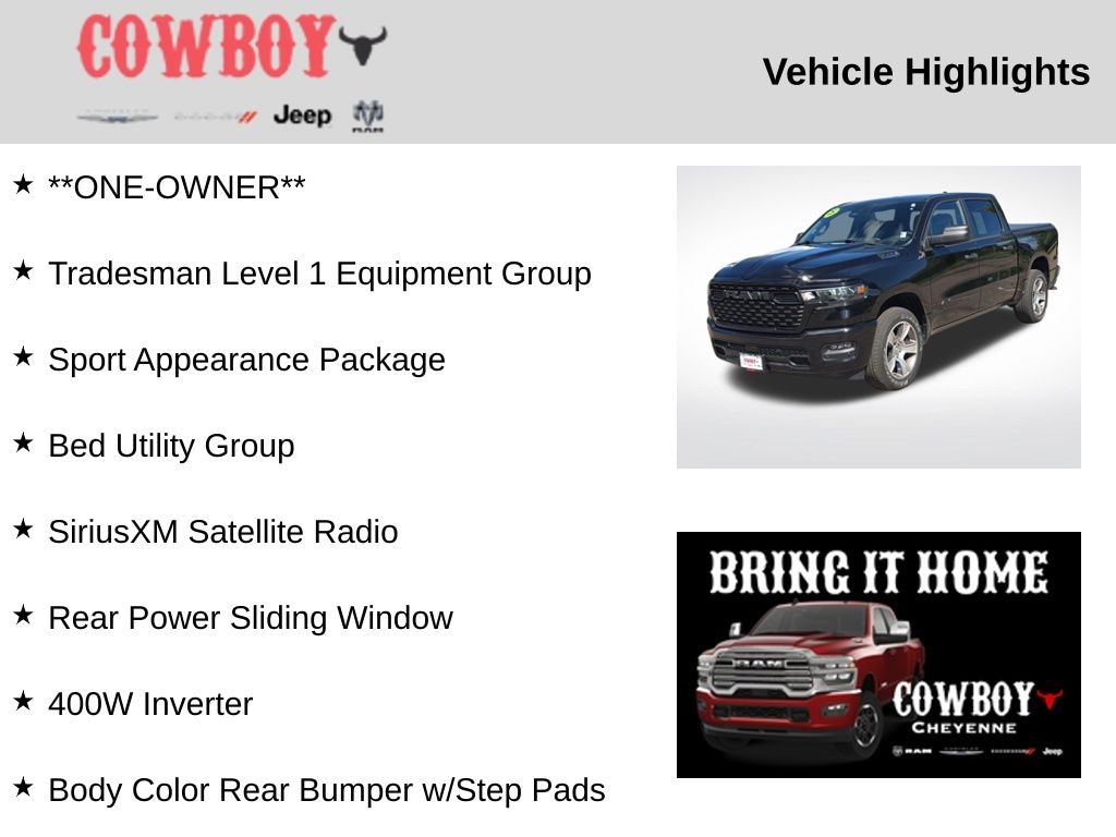 CARFAX One-Owner. Clean CARFAX. **ONE-OWNER**, 1500 Tradesman, 4D Crew Cab, 3.6L V6 24V VVT, 8-Speed Automatic, 4WD, Diamond Black Crystal Pearlcoat, Black Cloth.