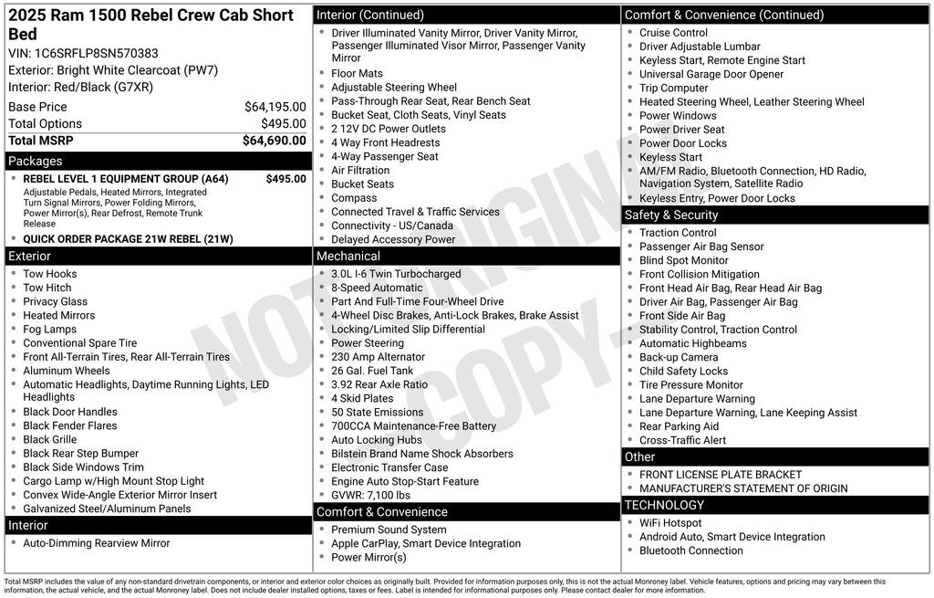 *MSRP is the Manufacturer's Suggested Retail Price (MSRP) of the vehicle. It does not include any taxes, fees or other gov't fees. Pricing and availability may vary based on a variety of factors, including options, dealer, specials, fees, and financing qualifications. Consult your dealer for actual price and complete details. Vehicles shown may have optional equipment at additional cost.