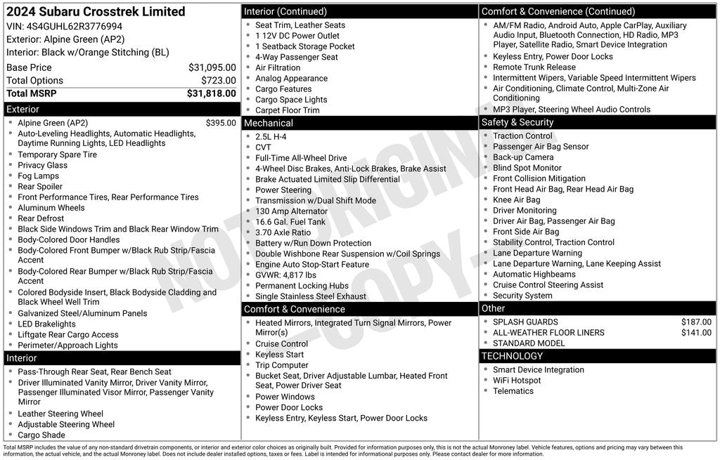 *MSRP is the Manufacturer's Suggested Retail Price (MSRP) of the vehicle. It does not include any taxes, fees or other gov't fees. Pricing and availability may vary based on a variety of factors, including options, dealer, specials, fees, and financing qualifications. Consult your dealer for actual price and complete details. Vehicles shown may have optional equipment at additional cost.