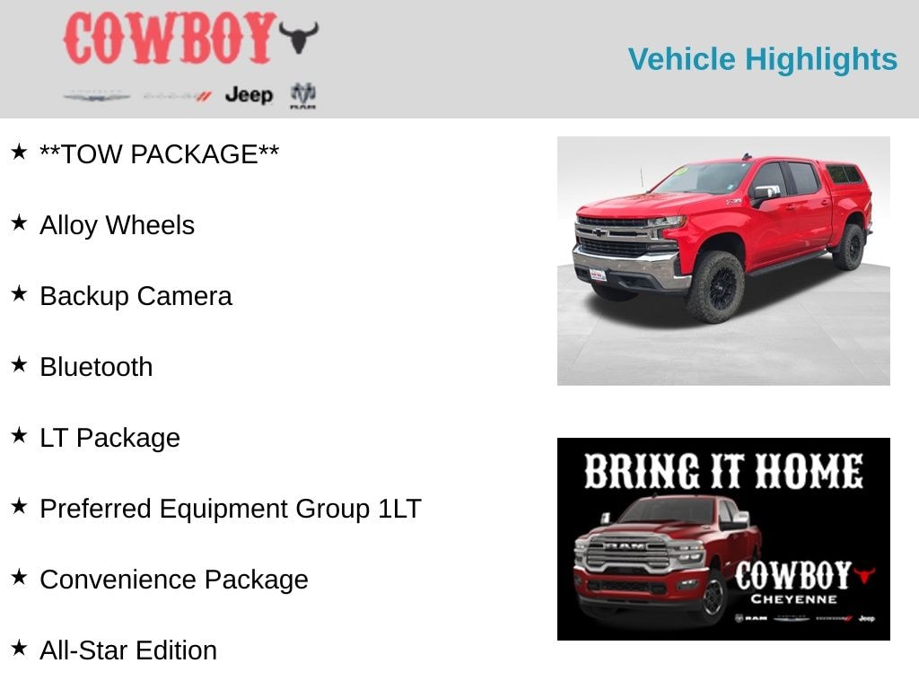 Recent Arrival! Clean CARFAX. Certified. **TOW PACKAGE**, Alloy Wheels, Backup Camera, Bluetooth, LT Package, Silverado 1500 LT, 4D Crew Cab, EcoTec3 5.3L V8, 8-Speed Automatic, 4WD, Red Hot, Black Cloth, 2 USB Ports (First Row), 4-Way Manual Driver Seat Adjuster, 4.2" Diagonal Color Display Driver Info Center, All-Star Edition, Bed Protection Package, Bluetooth® For Phone, Chevytec Spray-On Black Bedliner, Chrome Grille, Chrome Mirror Caps, Color-Keyed Carpeting Floor Covering, Compass, Convenience Package, Deep-Tinted Glass, Dual Exhaust w/Polished Outlets, Electronic Cruise Control, Front Frame-Mounted Black Recovery Hooks, Front Rubberized Vinyl Floor Mats, Heavy-Duty Rear Locking Differential, High Capacity Air Filter, Hill Descent Control, Lane Change Alert w/Side Blind Zone Alert, Locking Tailgate, Manual Tilt Wheel Steering Column, Off-Road Suspension, OnStar & Chevrolet Connected Services Capable, Perimeter Lighting, Power Door Locks, Power Front Windows w/Driver Express Up/Down, Power Front Windows w/Passenger Express Down, Power Rear Windows w/Express Down, Preferred Equipment Group 1LT, Rear 60/40 Folding Bench Seat (Folds Up), Rear Cross Traffic Alert, Rear Rubberized-Vinyl Floor Mats, Rear Vision Camera, Rear Wheelhouse Liners, Remote Keyless Entry, Safety Package, Single-Zone Manual/Semi-Automatic Air Conditioning, Steering Wheel Audio Controls, Trailering Package, Ultrasonic Front & Rear Park Assist, Urethane Steering Wheel, Z71 Off-Road Package.