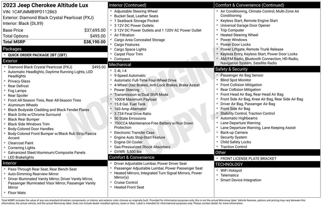 *MSRP is the Manufacturer's Suggested Retail Price (MSRP) of the vehicle. It does not include any taxes, fees or other gov't fees. Pricing and availability may vary based on a variety of factors, including options, dealer, specials, fees, and financing qualifications. Consult your dealer for actual price and complete details. Vehicles shown may have optional equipment at additional cost.