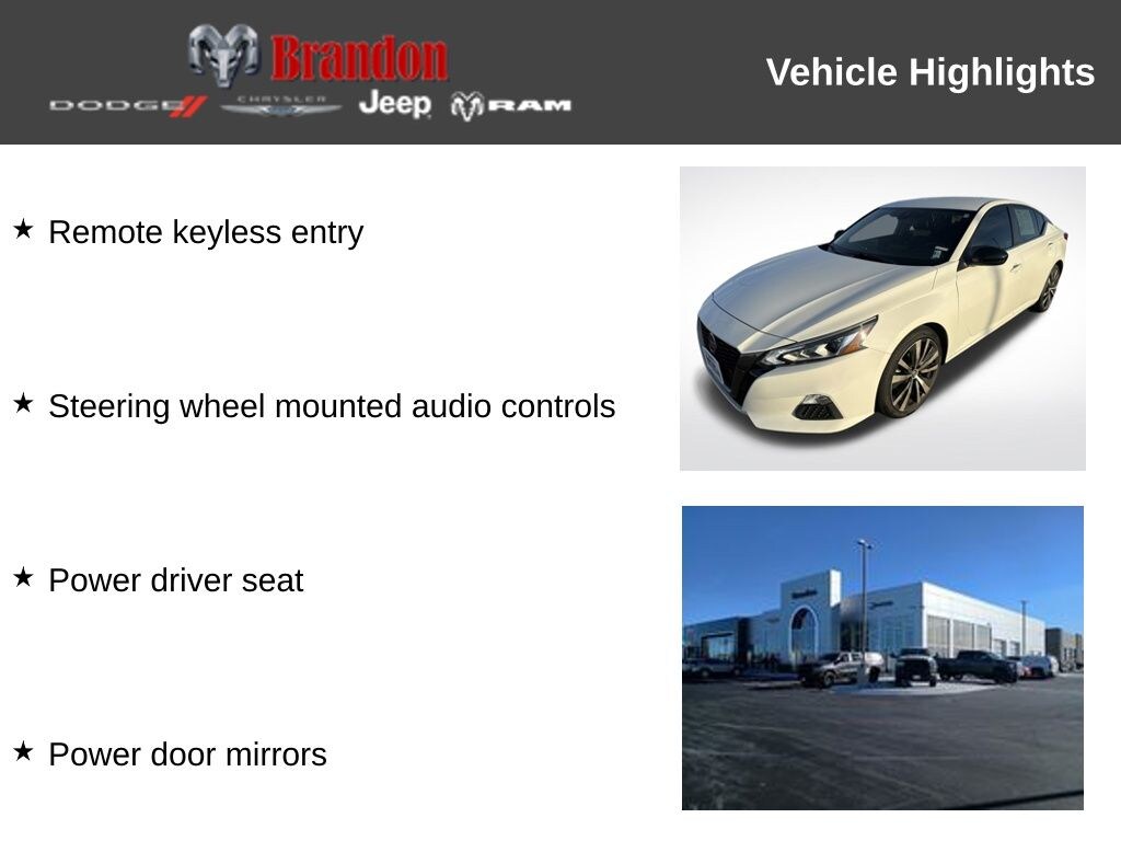 Certified. Glacier White 2021 Nissan Altima 2.5 SR FWD CVT with Xtronic 2.5L 4-Cylinder DOHC 16V Altima 2.5 SR, 2.5L 4-Cylinder DOHC 16V, CVT with Xtronic, Glacier White, Power door mirrors, Power driver seat, Remote keyless entry, Steering wheel mounted audio controls.